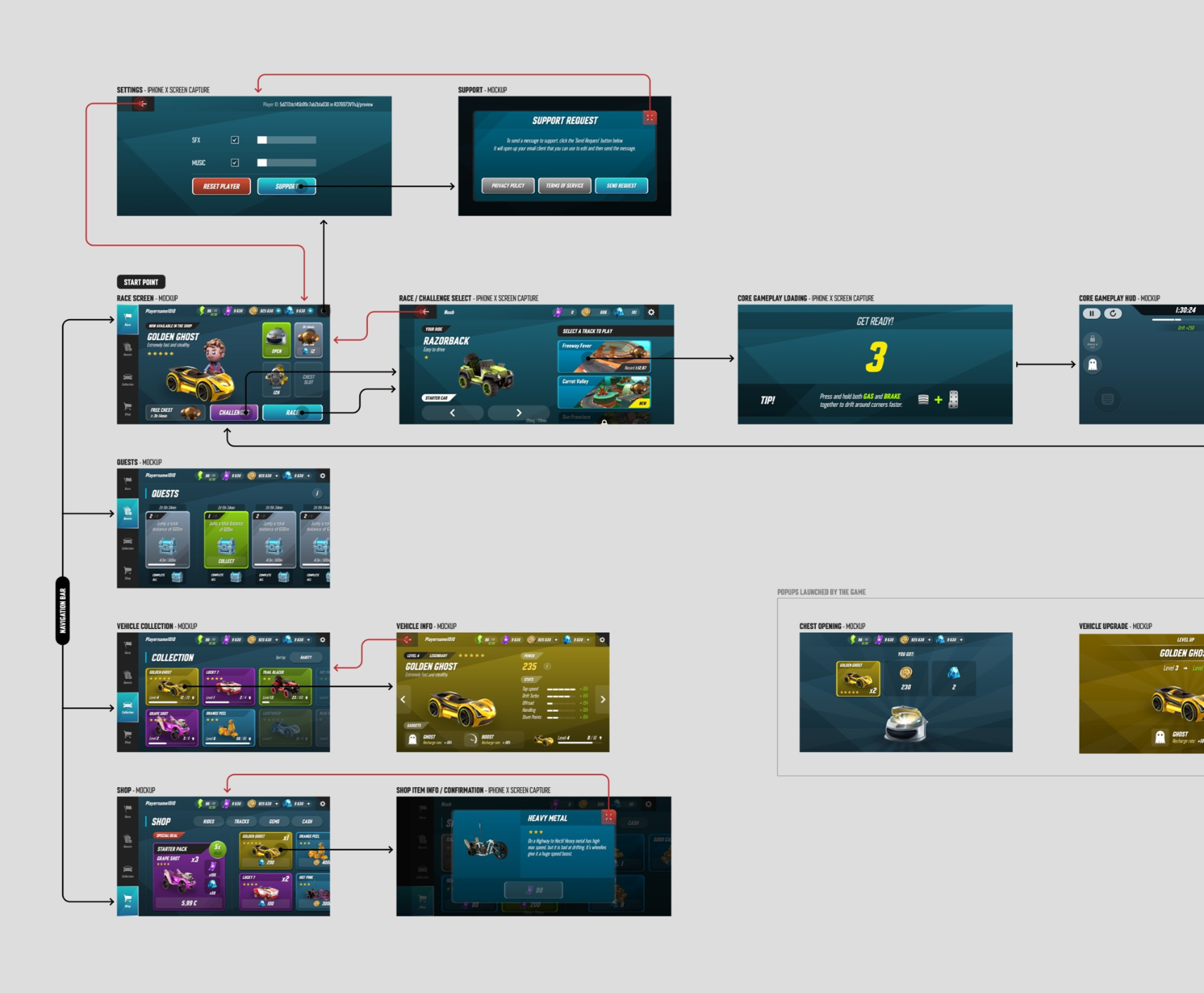 Below you can find some example screenshots and flows from the project. In addition to user experience, all of the UI visuals and icons were created by me.