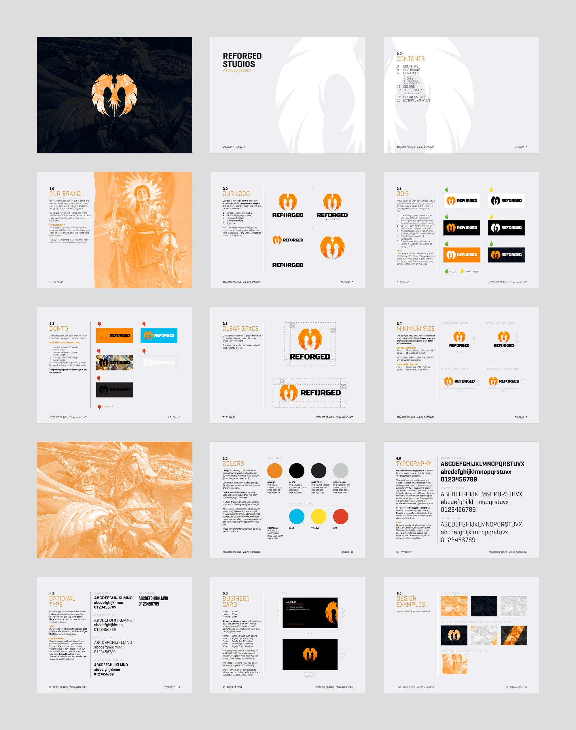 Visual identity for Reforged Studios, including logo design, typography, colors, website, slide templates as well as visual guidelines.